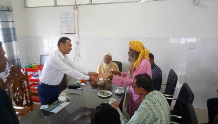 মধ্যনগর উপজেলা প্রশাসন থেকে বাউল নেসারুদ্দিন’কে সম্মাননা