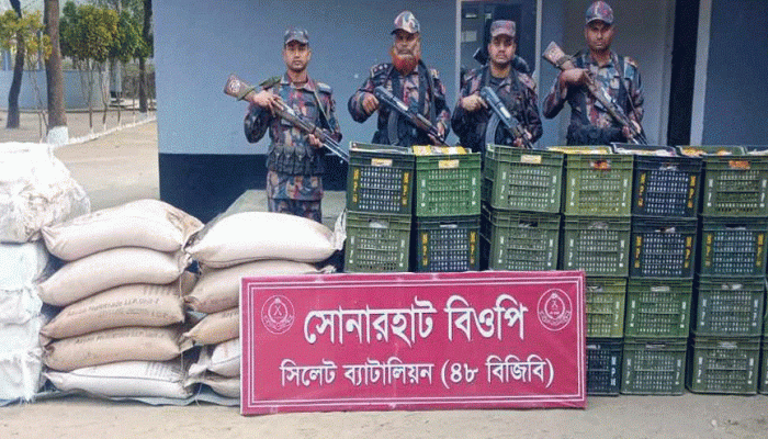 সিলেট ও সুনামগঞ্জ সীমান্তে বিপুল পরিমাণ ভারতীয় পণ্য জব্দ