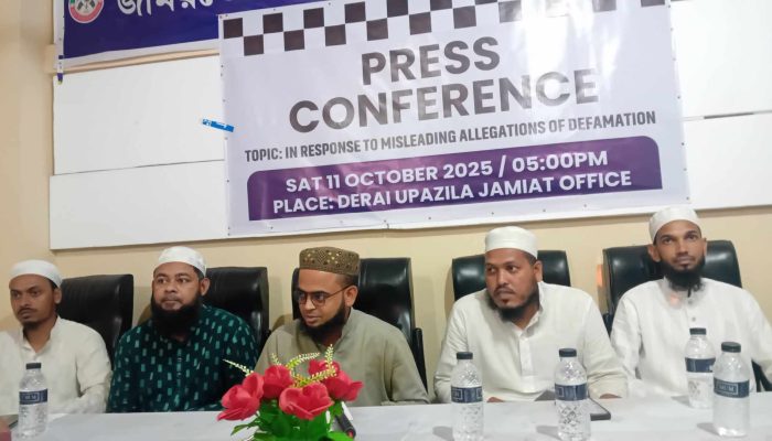 দিরাইয়ে মিথ্যা মামলার প্রতিবাদে ছাত্র জমিয়তের সংবাদ সম্মেলন