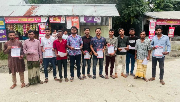 খালিয়াজুরীতে তারেক রহমানের ৩১ দফা লিফলেট বিতরণ